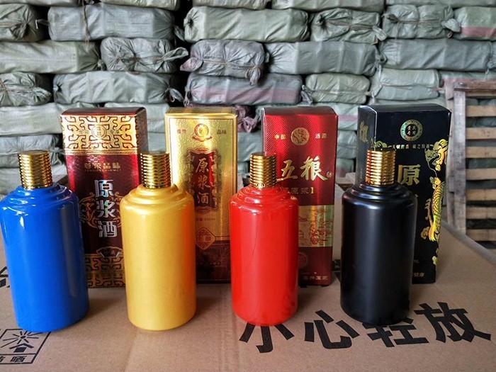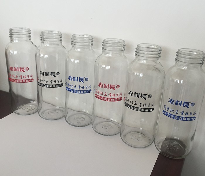 蒙砂酒瓶是在制品玻璃上,粘附一定大小面積的玻璃色釉粉,玻璃瓶廠經(jīng)過580~600℃的高溫烘烤,使玻璃色釉涂層凝結(jié)在玻璃外表,并顯現(xiàn)出具有與玻璃主體不同顏色的一種裝飾辦法。粘附玻璃色釉粉,可用排筆涂刷,亦可用膠輥滾涂。經(jīng)過絲印加工,能夠得到蒙砂面的樓空?qǐng)D案。 其辦法是:在玻璃制品外表上,絲印一層由阻熔劑構(gòu)成的圖案紋樣。